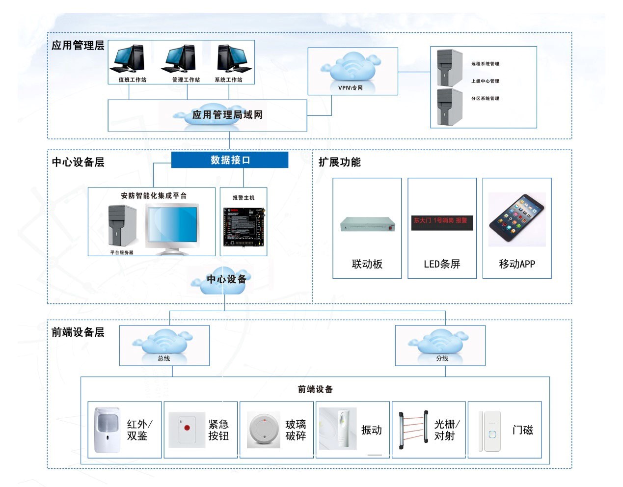 8、非常靈活的防區(qū)編程,有線防區(qū),無線防區(qū),IP攝像頭作為虛擬防區(qū)可整合到一個地址范圍內(nèi)。