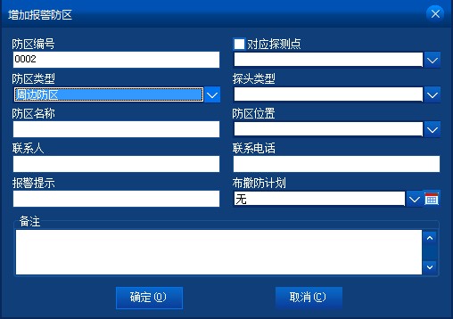 可錄入報警防區(qū)的聯(lián)系信息和探頭類型及防區(qū)備注。