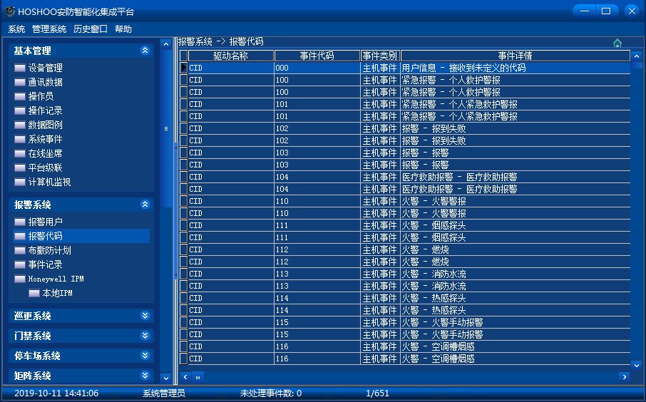 管理報警系統(tǒng)的主機(jī)報警代碼。