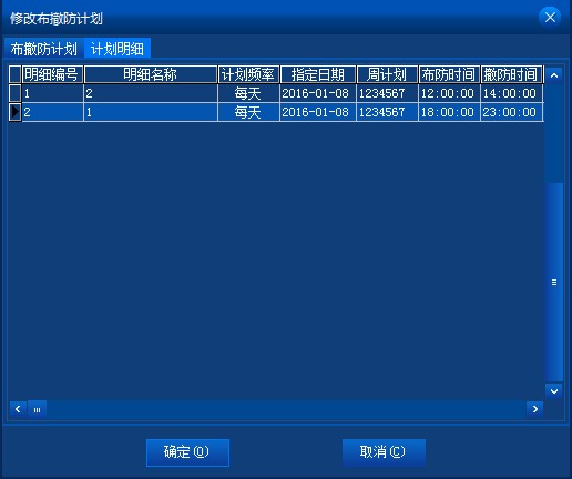 修改布撤防計劃時,顯示布撤防計劃明細(xì)選項頁。如下圖: