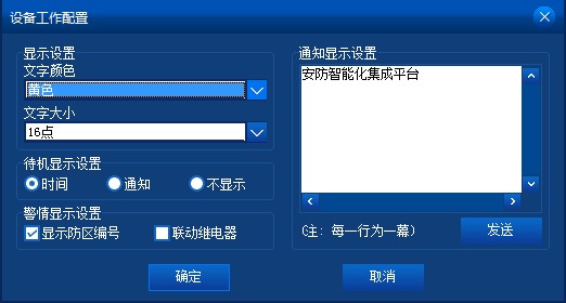 設(shè)置顯示屏的顯示參數(shù):顏色、文字大?。淮龣C(jī)顯示方式、警情顯示設(shè)置和通知顯示設(shè)置