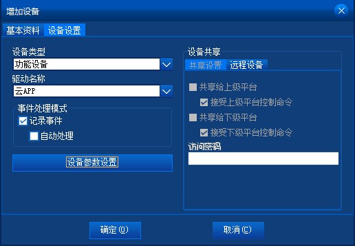 設(shè)備共享:共享給上級平臺:將該設(shè)備共享給上級平臺,以便上級平臺通過網(wǎng)絡(luò)可使用該設(shè)備;接受上級平臺控制命令,設(shè)置是否允許上級平臺對設(shè)備發(fā)送控制命令。共享給下級平臺:將該設(shè)備共享給下級平臺,以便下級平臺通過網(wǎng)絡(luò)可使用該設(shè)備;接受下級平臺控制命令,設(shè)置是否允許下級平臺對設(shè)備發(fā)送控制命令??稍O(shè)置共享出去時的訪問密碼,兩邊密碼要一致時,方可訪問。對應(yīng)遠(yuǎn)程平臺共享設(shè)備:可使用其他平臺的共享設(shè)備,選擇與本平臺連接的遠(yuǎn)程平臺的名稱后,再選擇該平臺的共享的設(shè)備,則當(dāng)前設(shè)備為遠(yuǎn)程平臺所對應(yīng)的共享設(shè)備,可通過網(wǎng)絡(luò)訪問這個遠(yuǎn)程設(shè)備??稍O(shè)置共享設(shè)備的訪問密碼,要與被共享設(shè)備設(shè)置的訪問密碼一致時,方可訪問。對共享設(shè)備提供訪問保護(hù)。