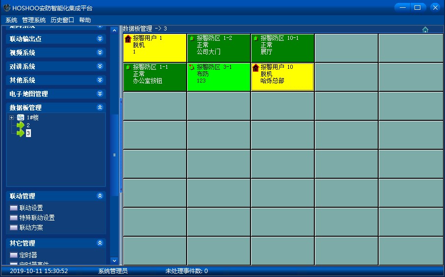 在用戶樹中,選中用戶下的防區(qū)后,控制區(qū)域顯示防區(qū)控制。如下圖: