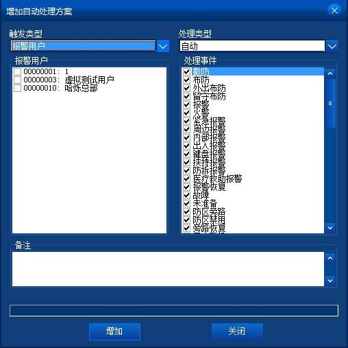 右鍵菜單,點擊【增加】,將彈出增加報警使用者框,如下圖: